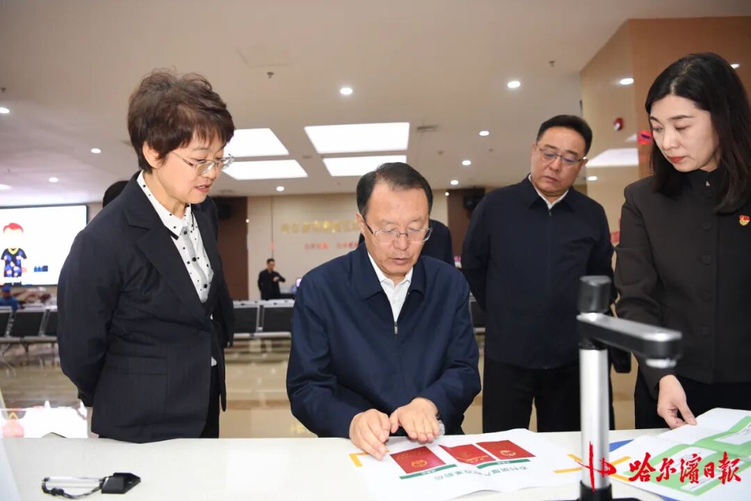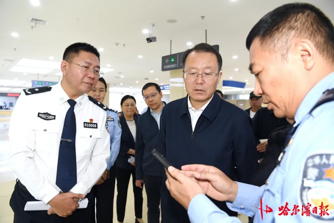在市政务服务大厅,于洪涛随机察看“AI惠企名”、“购房落户”全程网办、信用修复“七城通办”、“哈智建”等服务审批平台运行情况,与窗口工作人员、办事群众和企业人员亲切交流,详细询问综合事项办理便捷度、政务服务满意度等。他指出,政务服务窗口是党和政府联系群众的桥梁纽带,要站在便民利企的角度,多换位思考、多亲身体验,积极探索创新,在制度设计上更精细、服务供给上更高效,让“办事不求人”、“高效办成一件事”成为新风常态,进一步激发市场活力、提振发展信心,把营商环境“软实力”转化为振兴发展“硬支撑”。